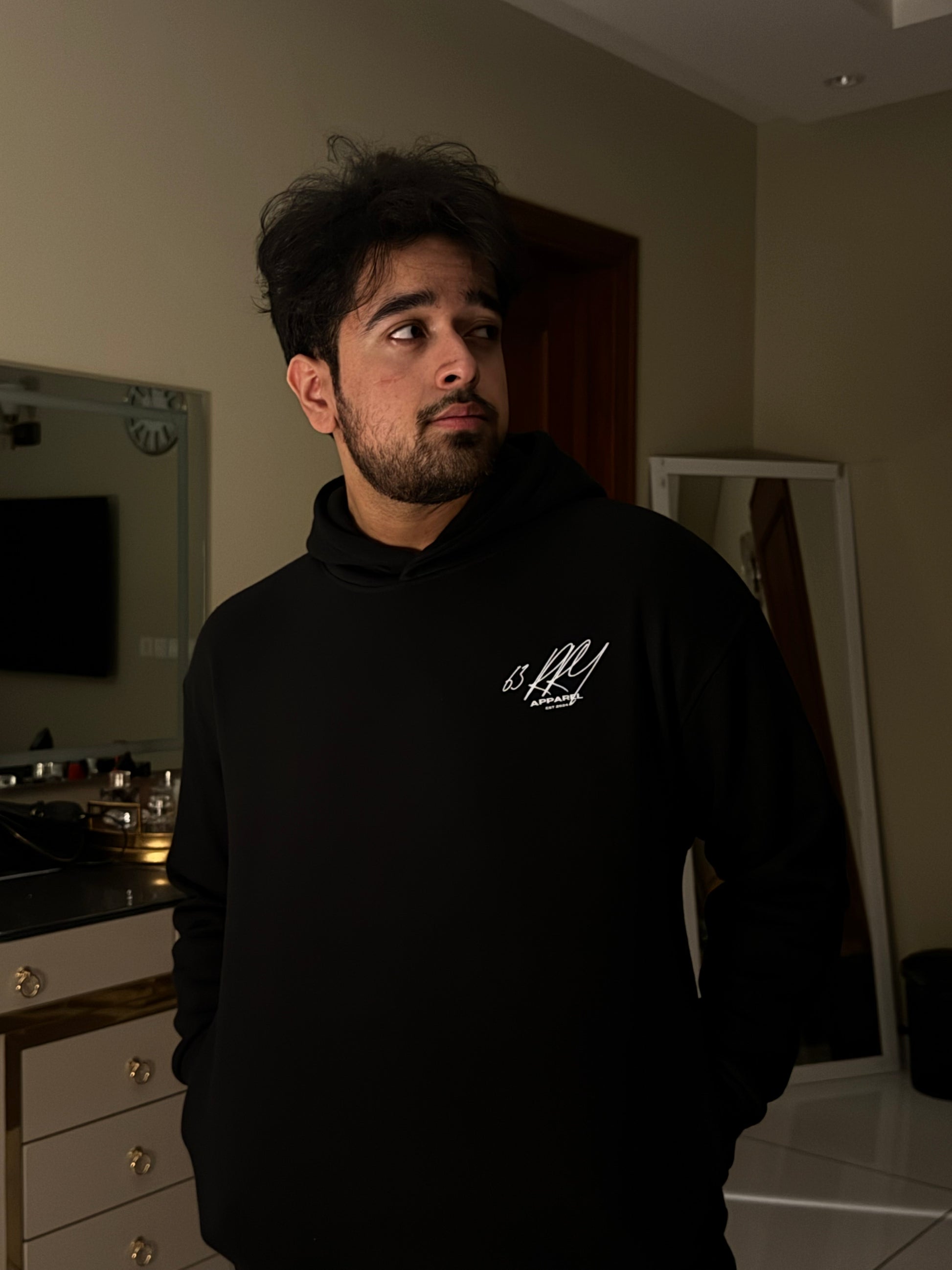 Black Oversized Hoodie + Glitch “63 RRY” finish in White